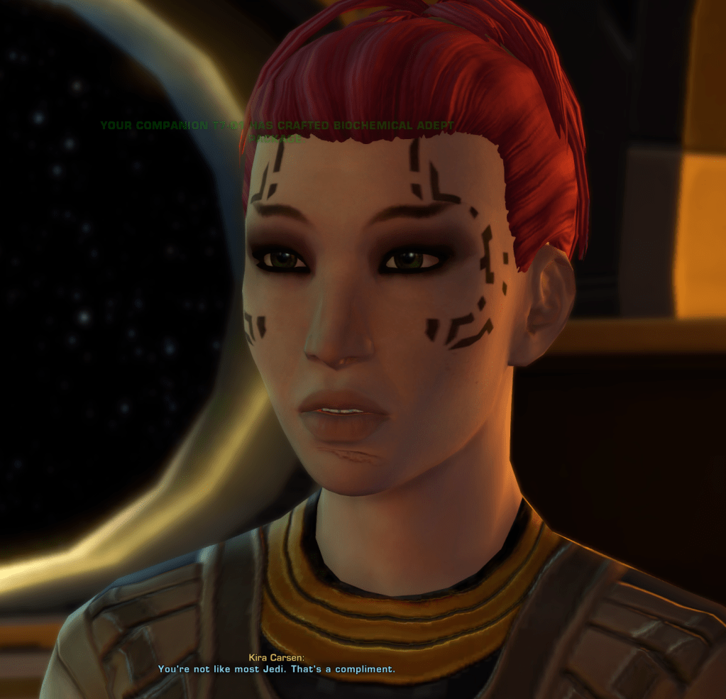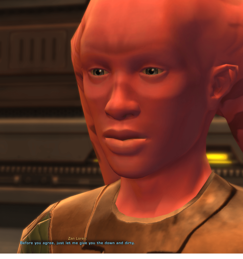 swtor was a decent chunk of my online life 2014-19 and i had some great times. at the very tail end of this, i started a stupid fanfic that i then abandoned. now i want to finish that fic but forget the plot. and, due to absent-mindedness, i probably have like $texas cartel coins. plus this country is fucking collapsing and there are only so many non-felonious coping methods so let’s gooooooo