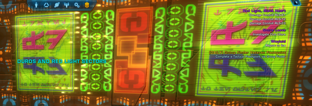 so here i am on the jedi knight story. being a great big girl scout, etc. and also taking a nice relaxing trip to nar shaddaa to take screenshots of signage.